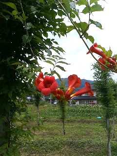 休耕田を利用した池にたくさんの種類のハスが咲いていました。 訪れた時にはノウゼンカズラも見頃でした。 また、真ん中の写真の奥に見えるテントでは、地元の特産品や手作りまんじゅうを売っていました。 |