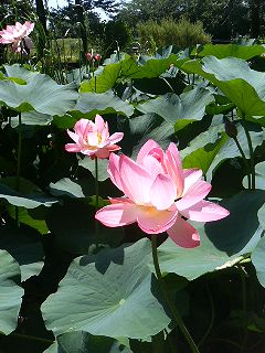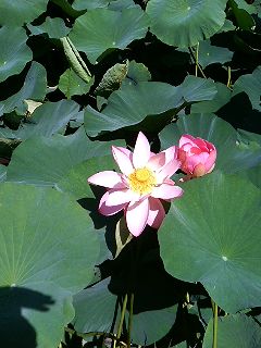 オニバス池と水産試験場跡の池にて。両方の種類のハスが見頃を迎えてきました。