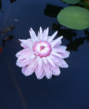 夜間開館日に出掛けてきました。9日前には蕾の状態であったパラグアイオニバスが咲きました。 写真は、開花2日目の様子です。尚、この花は夕方から夜にかけて開きます。