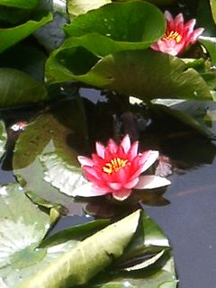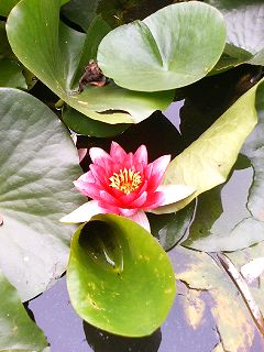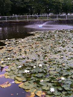 小さな動物園も併設されている公園の池に、スイレンが浮かんでいました。