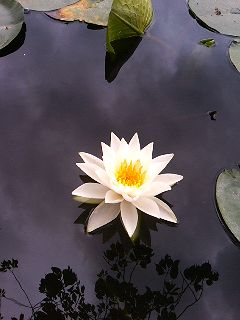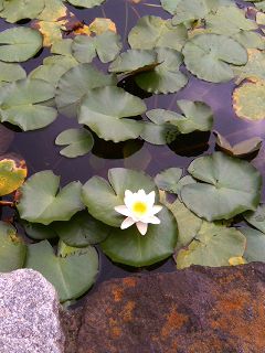池の淵に近い場所でも、白い花が咲き始めておりました。 |