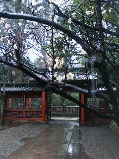 | ツツジで有名な神社にも本殿脇に数本の梅の木があります。 |