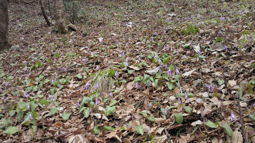 雑木林の山に、今年もカタクリの花が咲き始めました。