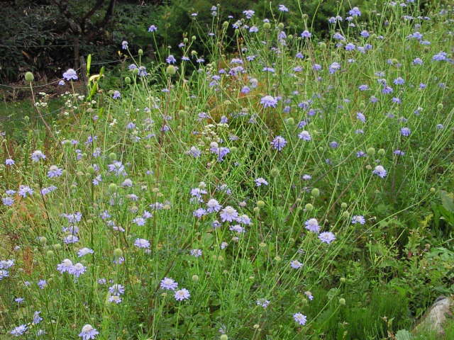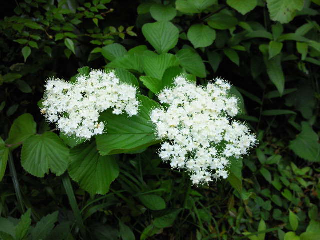 トンボが飛び始めた山の中では、白い花々が涼やかに咲いていました。