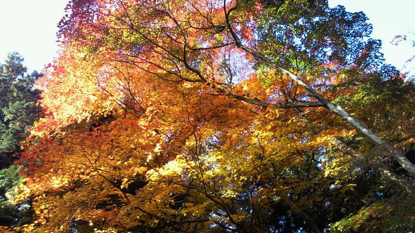 山頂は冬枯れ、山麓・中腹は見事な紅葉でした。