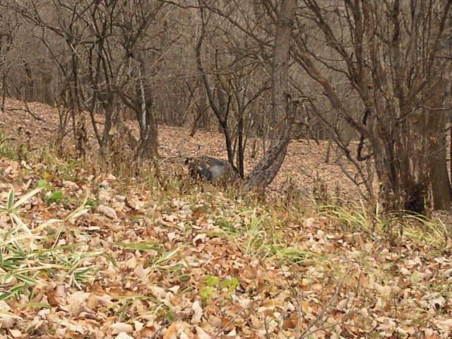モミジとカラマツの紅葉・黄葉を抜けると、冬枯れの雑木林が待ち受けていました。