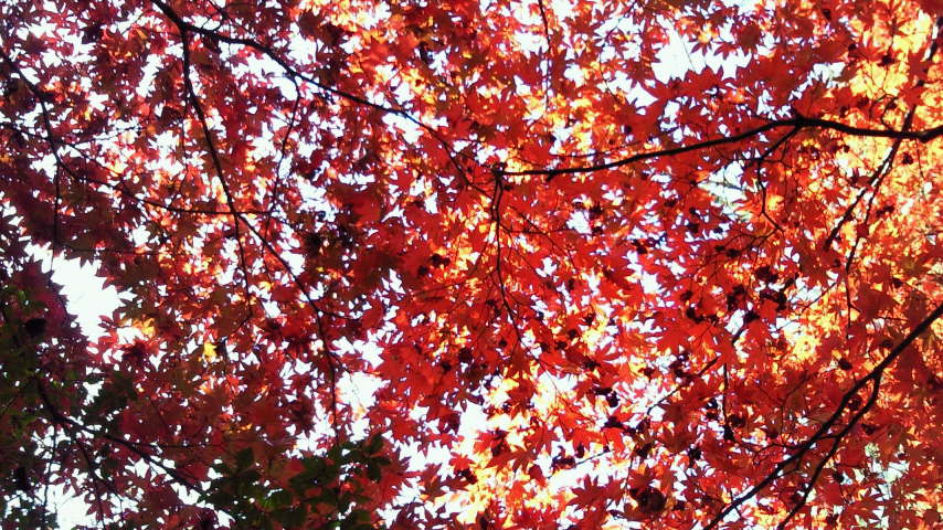 昨秋に落ちた葉っぱが、木漏れ日で再び紅く光っていました。