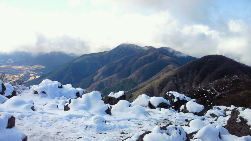 うっすらと雪の積もった痩せ尾根を登ると、大展望が待っていました。