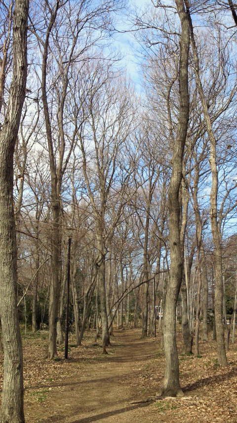 冬枯れていても、活き活きとした線路沿いの雑木林です。