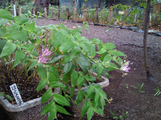 冷たい雨の降る中でも、ホトトギスが健気に咲いておりました。 |
