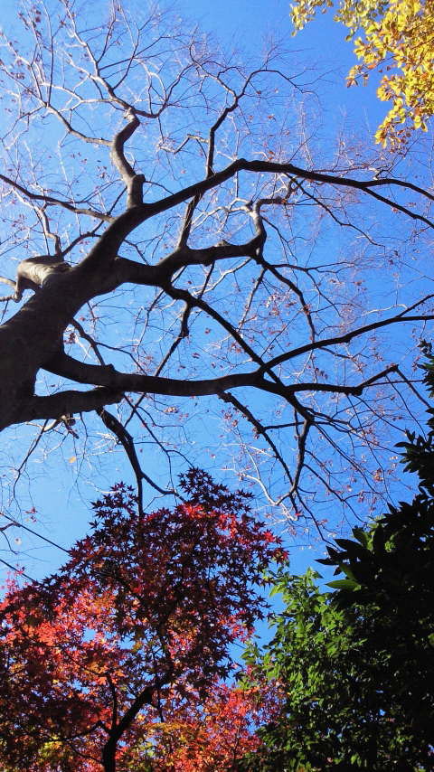 暖かみのあるミカンの絵を見たあとに、冬枯れと紅葉の両方を楽しみました。 |