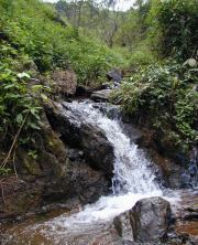 シャワーを浴びてさっそく街の散策に入る。メーサロンの街はふもとから続く一本道をの両側にへばりついているといってもよい。これまで散々坂を登ってきたのに、街の中の高低差もなかなかなものだ。普段運動不足の身体にはかなり堪える。すぐに息が切れるけれども、空気がおいしいのでそれも心地よい。空気が汚いバンコクにいるからだろうか、よけいにそう感じる。平坦な道に出て呼吸が整っても、脳がもっと吸えと催促してくる。仕方なくわき道にそれて斜面にへばりつくように家が建っているあたりを歩く。雰囲気は尾道を思わせる。細くて緩くカーブした坂道の先からにわとりの親子が餌をついばみながら歩いてくる。家の台所からは炭を焼く臭いが漂う。しばらく歩くと舗装が切れ、田んぼのあぜ道のようになる。そうなると家は茅葺に変わる。アカ族の住む家だと後で知った。ある家の前の石の上に座って休んでいると、遠くで水の流れる音がする。その音をたよりにさらに土の道を降りていく。僕はまだタイで透き通った川を見たことが無い。バンコクを流れるチャオプラヤー川はどこまでさかのぼっても茶色い水だ。カンチャナブリーにあるエラワンの滝にも行ったことがあるが、きれいだけれども清流ではない。自分はどうしてもタイの清流を見てみたいという衝動に駆られていた。しかしその音は行けども行けども近くはならなかった。そろそろ諦めようかと思っていた頃、道の前方に川が見えた。近寄ってみると幅2mぐらいのその川は、期待に反しやや濁っていた。上流に目をやるとメーサロンの中心部があった。生活用水が流されてる事を想像するのは簡単だった。僕は反対側の山へ向かって歩き出した。その山の上には家が見当たらなかったので、きっと透き通った小川があるに違いないと思った。こうなったら意地だ、絶対に探し当てようと思った。メーサロンの町並みがどんどん遠くなる。そして僕はどんどん下って行く。