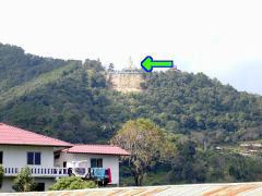 30分も経った頃、町へとひき返す。はるか上方に町並みが見える。風はひんやりしているが、さすが南国だけあって陽光は強かった。すぐに身体は火照り、額に汗がにじむ。ちょっとしたトレッキングを終えて町に戻った僕の眼に写ったのは、崖の上にそびえ立つ仏塔だった。近くのおばさんに、あそこからの眺めは最高だけど、長くて急な階段を登らないとならないと行けないと言われ、少しひるむ。でも最高の景色と言われたからには登らないわけにはいかないよな。気だるい身体に鞭を打って僕は仏塔を目指した。最初のうちはかなりの角度の急坂を登った。途中MeasalongResortの入り口に中国寺院があった。さらに登ると今度はタイのお寺だ。ここまで来ると周りに家は無くなり、お寺の裏から急な階段が始まった。まだできたばかりのコンクリートの階段は崖を縫うように上へと続く。この階段ができる前は崖をよじ登っていたのか、崖のところどころが階段のように掘れている。実際アカ族の人たちはその崖をひょいひょいと登った。