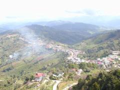 発車してしばらくはなだらかな一本道を車は快調に飛ばした。チャーターしているので助手席に陣取ったこともあり、周りの景色を楽しむ余裕があった。ところがいざ山道にさしかかるとかなりの急なカーブが連続した。箱根ターンパイクをさらにきつくした感じと言えば関東の人にはわかってもらえるだろうか。これで、もし荷台に座っていたらすっかり酔ってしまったかもしれない。20分程走ったところに少数民族の村があった。前には観光バスが停まっていて、中では西洋人が写真を撮っていた。すっかり観光化された村のようで、これから自分が行くメーサロンもそんな感じなのではないかと心配になった。その先はさらに深い山道だったが、時折目の前の景色が開けて遠くまで続く山並みが目に入る、目的地までもう少しだ。
