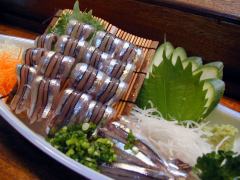 あての焼き鳥が出てきてグイグイやっていると、お仕事を終えたいわしやさんとグッズさんがいらした。おふたりには以前お会いした事があったので、しばらくぶりの再開である。あいさつもそこそこにおふたりも焼酎をやり始める。グッズさんが肴がもう無いので何か頼もうとおっしゃるので、焼き鳥の追加ときびなごの刺身を注文する。はっ、きびなごの刺身?あの小さい魚を刺身にするのか?僕は白魚の踊り食いみたいなのをイメージをしていた。ところが出てきたのは、どこから見ても刺身だった。