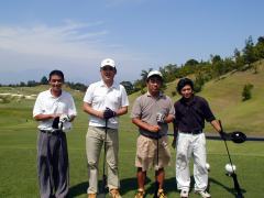 お腹もいっぱいになって午後のラウンドへ。タイのゴルフ場ってほとんどがまっ平らで、フェアウェイやグリーンも荒れている所が多いけど、このザ・マスターズは本当に良く手入れがされていて、しかも目の前の海を挟んでその先には雲仙の普賢岳が望める。つまりコースも眺望も文句の無いゴルフ場なのだ。先ほど昼食をとっていたレストランでは、ちょうど韓国からツアー会社の人たちが見学に来ていた。こんなにいいゴルフ場なので、韓国の人たちにはマナー良くまわって欲しいと思う。