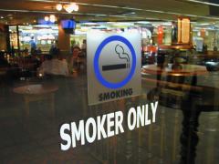 2月22日 1月18日にも書いたけど、タイでは今エアコンのある公共の場所は、ナイトクラブなどを除き禁煙です。ところが空港の第1ターミナルと第2ターミナルの間の4階にBillBentleyPubというのがあって、そこには写真のような「SMOKER ONLY」の表示がある。 そもそもこの店はパブなのでお酒を飲む店だから元々タバコは吸えるのだが、こういった表示をあえてするところがなかなか頭が良く、ビジネスチャンスを上手に掴んでいる。観光でタイに来た人は飲食店は全て禁煙だと思ってる人が多いだろうし、そんな法律を作った政府に対する皮肉もあるのだろう。政府も店の種別によって喫煙・禁煙を分けるんじゃなくて、その店がどちらにするのか任せて、きちんとこういう風に表示させればいい。この法律ができたおかげでバンコクの日本食料理店はのきなみ売上が落ちてるようだし、また、店内でタバコを吸ったからって警察が取り締まってるところも見たことないし、なんだか中途半端な感じがしてた。ところで先程のBillBentleyPub、店員さんに「タバコを吸わない人は入れないのか?」と訊いたら、「入れますが、ちょっとタバコ臭いですよ」ってニコニコしてた。100点満点の答えだ。 |