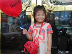 8月7日 今、日本からT梶さんご夫婦が娘の七海ちゃんを連れてやってきている。これまでは実家に預けて来ていたのだけど、今回は七海ちゃんも4歳になったので初めての海外旅行となった。七海ちゃんはとっても愛嬌がいいので、どこに行っても大人気だ。タイ人は男も女もすごい子供好きなので、レストランに行けば後から後からオマケが出てくるし、買い物に行けば飴玉をもらうし、化粧品屋に行けば口紅やマニキュアを付けてもらえる。でも、ただ可愛くて愛嬌があればこんな女王様になれるわけではない。七海ちゃんは「こんにちわ」「ありがとう」「私の名前は〜」等、ちゃんと日本でタイ語をマスターしてきているのだからよけいに可愛がられる。だいの子供好きの僕も、もちろんメロメロなのは言うまでも無いか。 |