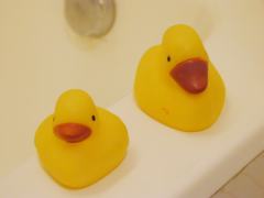 2月11日(プーケットにて) 朝早くからホテルを出発して戻ったのが夜10時半、そして明日は7時にはチェックアウト。本当に本当にもったいない。バスルームのアヒルも泣いている(笑?)。でも今朝Tシャツとパンツと靴下をそれぞれ2着ずつクリーニングに出したら全部で500バーツ(約1,400円)もした。やっぱり高いホテルはいるだけでそれなりに金がかかる。明日は夕方プーケットを発ち、飛行機を乗り継いで深夜チェンマイに着く。チェンマイのホテルはそんなに高級じゃないので安心してクリーニングを出せるかな? |