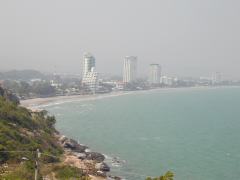 2月15日(フアヒンにて) 今朝5時半にチェンマイのホテルを出てバンコク行きの飛行機に乗り、バンコクからは車で3時間半かけて再びフアヒンにやって来た。涼しいチェンマイからやってきたのでさぞかし暑いのだろうと思ったら、風が心地よかった。聞くところによるとフアヒンは1年中そんなに暑くならないし、雨もあまり降らないそうだ。高台に上がってビーチを見渡したら、ちょっと霞んでいたけどなんだかホノルルの様に爽やかな感じがした。何でこんなにいい所があまり日本人に知られていないのだろうか?だけど、そんなことよりようやく明日で撮影が終わってバンコクに戻れる。帰っても仕事がたまりにたまっているのでゆっくりはできないけど、なんだかすごくうれしい。 |