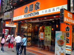 | 8月13日 香港の街を歩いていると、やたらと変な日本語の看板が目に付いた。「安全の品」「美味しの時」等々・・・。どうやら今香港では、タイと同じく日本から来た商品やサービスが売り文句になっているようだ。見た感じその商品名やキャッチコピーが日本人からすると明らかに変なものが多いので、たぶんそのほとんどは日本の物を真似しただけの偽物であろう。でも現地の人にはそんな事わかるわけない、かわいそうに。 そんな風に考えていたある昼下がり、これは正真正銘日本の物だという看板が目に飛び込んできた、“吉野家YOSHINOYA”。オレンジのベースに黒の歌舞伎文字、下には「牛肉飯専門店」とある。僕は別に、今日本でまるで優勝した時のベイスターズファンの様に湧いている大の牛丼好きではない。だから牛丼が食べられなくてもどうって事ないのだ、というよりも、そもそもバンコクに住んでたら全く関係の無い話しだし。だけどこの看板を見たらそんな牛丼ファン達に見せ付けるために食べなくてはいけないと思い、中に入った。入り口にあるパンフレットを見ると、香港には現在20軒もあるようだ。店内はファーストフードのようになっていて、客はカウンターで注文してお金を払い、トレーに載った牛丼を持って席に着くスタイル。 これは以前行ったロサンゼルスの吉野家と同じだ。さっそく食べようかと思ったけど、ちょうど飲茶をしたばかりであまりお腹が減ってなかったのと、そのパンフレットに“開店から11時までと14時から18時までは、通常並盛りHK$18(約270円)、大盛りHK$22(約330円)の牛丼が、緑茶とセットでたったのHK$12(約180円)”で食べられるとあったので、さっそく翌朝出直した。味の方は日本のとかわなかったが、ひとつだけ残念だったのは紅しょうがじゃなくてガリだったこと。同じ生姜でも甘ったるいガリは牛丼に合わない。ロスの吉野家でも紅しょうがだったのに。それでも久々に食べた牛丼はやっぱり美味しかった。日本にいる自称大の牛丼ファンの人達も、本当にそんなに好きなら紅しょうが持参で香港に来て食べるくらいの根性を見せなさい。 |