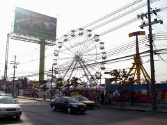 12月7日 タイにはまともな遊園地がほとんど無いので、遊園地で遊ぶという余暇の過ごし方の選択肢が基本的に無い。それはわざわざ暑い屋外に出で遊びたくない、日に焼けたくないというタイ人の気質が一番関係しているのだろうけど、今ラチャダーピセーク通りのジャスコの裏手、 以前BrewPavilionという巨大ライブハウスレストランがあった跡地に、TheAmazingFanParkという乾季限定の即席遊園地ができていて、外から見た感じ、時代遅れの(10年くらい)絶叫マシンがいくつか並んでいる。それでも遊園地で遊んだ事が無いタイ人にとってはワクワクものなのだろう、開門前からけっこう人が並んでいる(平日は夕方5時から深夜0時、週末は午後3時から営業)。この遊園地、某首相のバカ息子が企画運営をしている。なので某首相がオーナーであるタイ最大の携帯電話会社の携帯を持っていれば、50バーツの入場料が20バーツになる。僕はその携帯会社を使っているけど、あまりおもしろそうじゃないし、タイのこの手のものはメンテが悪くて当たり前のように人身事故が起きるので行かないつもりだ。でも、もう一ヶ所バンコクの郊外のムアントンタニーという所にも季節限定の遊園地ができている。こっちはもっと規模が大きくておもしろそうだし、運営もしっかりした所がやっているので、機会があったら行くかも。 |