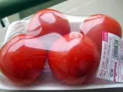 12月8日 先月お話ししたジャスコの桃太郎トマトがようやく入荷した。やや小振りだけど、4個で40.25バーツ(約108円)。これよりひと回り大きめのフジスーパーの桃太郎トマトが2個で70バーツ(約200円)だったから、かなりのお値打ちものだ。だけど、今度から少ないロッドで仕入れるとは聞いていたけど、まさかこの1パックだけとは・・・。もう少し入れてもらわないと、流通コストがかさむばかりか、買いに行ってもいつも売切れなのではないだろうか。ちなみに、タイで売っている普通のトマトは、ジャスコの桃太郎トマトよりひと回り小さめで、5個10バーツ(約27円)。これだけ違えば、タイ人はジャスコの桃太郎トマトを買おうと思わないよな。というより、フジスーパーのトマトって、何っ・・・? |