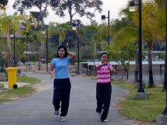 | 2月15日A ゴルフの師匠が健康の為にウォーキングをしているそうなので、僕も健康とダイエットと乗り物代節約のために見習ってみた。コースは普段なら絶対にバスか地下鉄で行く歩かない所にあるショッピングセンターの往復で、ようやく日が暮れて涼しくなってきた午後6時10分にスタートした。まずは地下鉄の駅がある大通りまで出て、そこから大通りの歩道をショッピングセンターまでひたすら早歩きで歩く。地下鉄にしてたったの2駅分だけど、およそ30分後、ようやく汗をかき始めた頃に到着した。バンコクは本当にまっ平で坂が無いのでそういう面では楽なんだけど、歩道が高くて所々ガタガタだし、ときたまぶつかる運河を渡る小さな橋がだいたいちょっと盛り上がっていたりして、まるでクロスカントリーをしているような感じだ。また、大通り沿いを歩くので夕方の大渋滞から吐き出される排気ガスを思いきり肺に吸い込む事になり、かえって身体に悪いと思う。そんななのでまだ片道だけなのに、ウォーキングは今日で終わりにしようと思い、その代替案として縄跳びを思いつき探すと、持ち手が木製のオシャレなのを見つけたので27バーツ(約75円)で買った。ショッピングセンターの中は冷房がガンガンなので、せっかく温まり始めた身体を冷やさないように、館内でもまるで「マグロは止まると死んじゃうの」といった感じで怪しげに歩き回り、両手にちょっとした負荷になる荷物を持って帰ることになった。でも、さすがにもうあの排気ガスの海には入りたくないので、かなり遠回りになるけど通ったことがない裏道を歩き始めた。すると今度は歩道の無い道なので、前から後ろから車やバイク、手押し屋台なんかが行ったりきたりするもんでまともに歩けない。しかも路地で風通しが悪いので、やっぱり排気ガスまみれだし。そんなこんなで、ようやくちょっとした大き目の道に出て再びボコボコの歩道を歩き、今度は45分かかってアパートに到着した。あぁ、海風を受けながら歩く師匠が羨ましい。明日からはアパートの屋上で縄跳びだ。 |