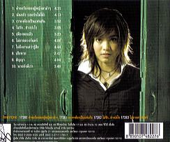 2月28日@<1>今月GMMグラミーからデビューした“パン(食べるパンじゃありません)”という女の子がいる。はっきり言ってこの子はかわいい。100%日本人にはいないタイらしいかわいさで、日本人に絶対にうけると思う。その彼女のデビューアルバム“プーイング・ター・ダムダム(黒い瞳の女の子)”の3曲目“♪ラオ・コン・トンペン・フェーンカン(私たちはきっと恋人同士にならなきゃならない)”がとても切ないいい歌で、そしてミュージックビデオがタイの下町を舞台にして撮影されていて、とでもかわいくできている。ちょっと早いけど、今のところ今年のベストVだ。本当はジャケットの写真を載せるのだろうけど、ジャケットは1曲目のイメージに合わせてちょっと大人っぽい顔つきをしていてイマイチなので、裏の写真を載せました。 |