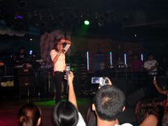 7月9日@ 昨夜は友達のNutとYaoとPUNCH(“パン”と読みます)のライブに行って来た。場所はチャオプラヤー川を渡った先にあるトンブリープラザの中にあるポセイドンというディスコで、電話で席を予約していたのでステージ際の席に座れた。ライブは23時ぐらいには始まるはずだったんだけど、機材のトラブルなんかで30分以上遅れて始まった。 まず最初はアルバムのタイトルにもなっている♪プーイング・ターダムダム、続いては♪マイラック...チャーンパライと好きな曲が並んだので期待が膨らんだのだけど、「自分はまだアルバムを1枚しか出していないから足りないので、他のミュージシャンの曲も歌います」というMCがあって、Emdrphineの♪シン・サムカンになった。これだけならいいんだけど、その後も他のバンドの曲や洋楽が続いて気が付けばもう0:30を回っていた。そしてようやく持ち歌の♪マイトゥサー・テーワー・ルースックになって、何となくこの後一番ヒットした♪ラオ・コン・トンペン・フェーンカンで終わりそうな雰囲気だったので、我慢できず紙にタイ語で“♪サンヤーが聴きたい”と書いて渡したところ、実際あと一曲で終わりだったのだけど、特別に打ち込みのプログラムなんかを変えてくれて本当に歌ってくれる事になった、しかも「あなたの為に歌います。一緒に歌える?」なんて言われて。 この曲は色々あって思い入れの強い歌だったので、どうしても生で聴きたかったのだ。 PUNCH自身もあまり話題にならなかったこんな歌を好いていてくれる人がいるんだ思ってうれしそうだった。サビの所なんかではこっちをギュッと見つめてくれたし、もうオジさんヘロヘロでした。ライブの途中にクイズ大会があって、Yaoが見事にサイン入りポスターをGetしてくれ、しかも僕が持っていたアルバムのジャケットにサインまでしてくれた、“Yaoさんへ”って書いて(トホホ・・・)。家に帰ってから早速ポスターを部屋に貼った。やっぱりカワイイや。今日本のタイ通の間で少しだけ売れているタイのPalmyという歌手がいるのだけど、彼女のライブは自分勝手で客のことなんか考えてなくて全くつまんない。だけどPUNCHは元々の性格がいいのだろう、常にお客さんに気を使っていてとってもいい感じなのだ。16日にもまたライブがある。絶対にまた行こう!それにしても生で観るとやっぱり眉毛が強烈だった。 |