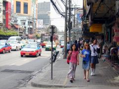 7月12日@ 昨日からバンコクでは毎週月曜日は屋台の営業が全面禁止になった。町の清掃をする為らしいんだけど、以前も毎週水曜日が禁止と言ってたけど、全然守られなかったので今回もどうせ同じだろうと思ってたら、用事があって服飾関係の市場であるプラトゥーナムに行ったら、いつも道沿いにずらっと並んで人の往来を邪魔していた屋台が本当に全て無くなっていて、何だか正月になった感じだった。ということは、パッポン通りのそばのシーロム周辺でも同じなのかな?それにしても、歩道が歩きやすいって素晴らしい。 |