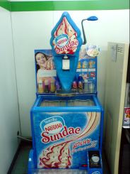 7月19日@![]() ![]() 最近、一部のファミリーマートにこのような器具が設置されている。コーヒーのNestleが開発したサンデーマシンだ。中に入っているカートリッジ状のアイスを器具にはめ込んで、まるで大げさなスロットマシーンのようなレバーを引くと下のカップに中のアイスが押し出されサンデーが出来上がるのだ。1つ15バーツ、マックやKFCのコーンアイスが7バーツだから、ちょっと高いね。 |