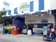 5月1日 前にうちの近所の屋台村で美味しい“鶏照り焼きご飯”があるって書いたけど、実は1ヶ月ほど前にその屋台村の半分に何か建設し始めた。そして昨日、何のイベントも無く淡々と“テスコロータス・エクスプレス”がオープンした。“テスコロータス”とはいわゆる大型ディスカウントスーパーのことで、うちのそばにオープンしたのはその小型版だ。行ってみれば個人経営の街のスーパーって感じで、コンビニでは売っていない野菜やちょっとした惣菜、冷凍食品などがあり、しかもほぼ定価販売のコンビニよりも安いのだ。寿司まで売ってるからもうビックリ。そして今まで家の近所に無かったバンコク銀行のATMまでできて、ものすごく便利になったんだけど、その屋台村が狭くなったおかげで、僕の大好きだった“鶏照り焼きご飯”がなくなってしまった。もう本当にガックリ。無くなると余計に食べたくなるんだよね・・・。 |