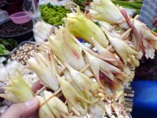 5月11日 今日は木曜日なので近所の定期市が立つ日なんだけど、何気なくブラブラしてたら写真のような串刺しを見つけた。これはおそらくミョウガじゃないかと思うんだけど、そんなに香りもしないし表面のツヤが無いので違うかもしれない。名前を訊いたら“ドック・ガチアム”と言っていたので、辞書で引いたけど載ってなかった。思い切って買ってみようかと思ったけど、こんなにたくさん一人で食べきれるわけないし、ミョウガを食べたいと思わせるようなものもタイには無いし。こんな事書いてるとむしょーに食べたくなってきた。ぬか味噌に漬けて炊き立てのご飯と一緒に・・・、刻んで冷たく冷やした素麺で・・・。 |