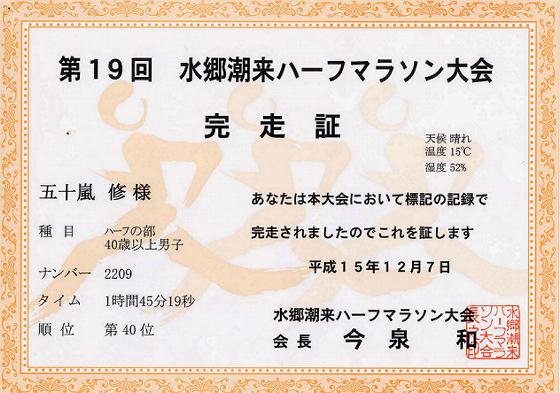 初めてのハーフ辛かったけどがんばった(がんばるオヤジ)